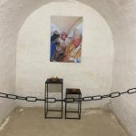 Za početak smo bili provedeni kroz vojni bunker koji se nalazi podno „Aljmaške Kalvarije“ i preuređen je u Memorijalni centar. U njemu smo mogli vidjeti razna umjetnička djela koja su povijesno vezana uz Aljmaš te čuti o njihovom nastanku, o povijesnim zbivanjima i izgradnji sadašnje crkve koja je četvrta podignuta na tom mjestu. Posljednja crkva je srušena 1992. godine za vrijeme Domovinskog rata kada je u potpunosti devastirano i samo selo, ali je pod čudesnim okolnostima sačuvan kip Gospe od Utočišta. On se danas nalazi u novoizgrađenoj crkvi koja ima simboličan izgled labuda koji izlazi iz Dunava.