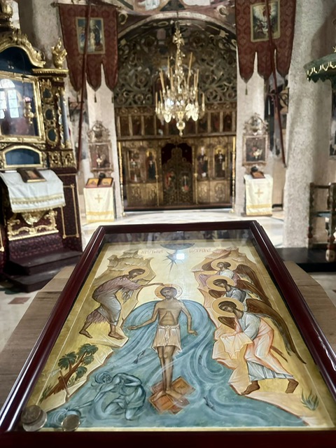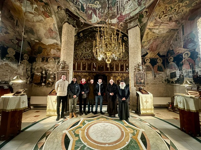 Nakon ugodnog putovanja stižemo na prvo odredište: pravoslavni manastir Bođani u Bačkoj. Stigavši, krenuli smo u razgledavanje crkve koja je posvećena Prikazanju Blažene Djevice Marije. Pronalazimo jednoga od tri monaha koji tu žive. On nam velikodušno izlazi u susret te nam opširno razlaže povijest crkve i manastira. Prema zapisima manastir je sazidan u studenom 1478. godine. Na mjestu današnje crkve je bio izvor pitke vode. Prema predaji, povod izgradnje bio je taj da se je trgovac imenom Bogdan iz Dalmacije, prolazeći tim krajem zavjetovao Bogorodici da će u njezinu čast na tome mjestu podignuti crkvu ukoliko ozdravi od bolesti očiju umivši se na tom izvoru. Po njemu je i mjesto dobilo ime Bođani. Crkvu krase brojne prekrasne ikone te freske koje je oslikao slikar iz 18. stoljeća Hristofor Žefarović. Posjetili smo i suvenirnicu u kojoj smo kupili tamjan koji monasi vlastoručno izrađuju te vidjeli ostale proizvode poput meda, propolisa, ikona i dr. Zahvalni, pozdravljamo se s monahom imajući pri tome na pameti da se nalazimo u osmini za jedinstvo kršćana te odlazimo u Bač.