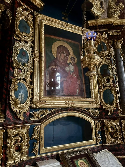 U samostanu se nalazi ikona Gospe Radosne koju su 1688. sa sobom donijeli bosanski franjevci koji su naslijedili ivanovce. Prilikom renoviranja samostana, majstori su skidanjem žbuke naišli na očuvanu fresku koja prikazuje mrtvog Krista, nakrivljenog nalijevo, dio križa, Bogorodicu u tamnocrvenoj odori te monogram ICXC. Na osnovi toga stručnjaci su zaključili da se radi o bizantskoj freski, a datirali su je u razdoblje između polovice 13. do polovice 14. stoljeća. Samostan posjeduje i veću zbirku baroknih slika i skulptura iz 18. stoljeća, a u knjižnici se nalaze vrijedna djela napisana u razdoblju od 15. do 20. stoljeća. Ovaj poviješću iznimno bogat samostan Uznesenja Blažene Djevice Marije 2001. godine je proslavio 700. obljetnicu dolaska franjevaca u Bač. U samostanu se nalazi bogata zbirka nošnji Hrvata Šokaca i Bunjevaca. Fra Josip nam je vrlo stručno objasnio njihovo porijeklo i nijanse koje su karakteristične za svako pojedino selo.