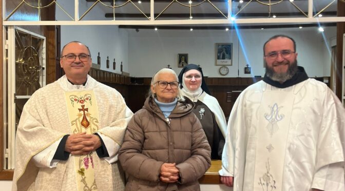 U subotu 13. prosinca 2025., na spomendan sv. Lucije, djevice i mučenice, fra Matej Jovanovac, TOR, predslavio je svečanu misu zahvalnicu u prigodi 25. obljetnice redovničkih zavjeta s. Marije Josipe od Presvetog Trojstva (Marije Cerovski). Uz njega su slavili preč. Nikica Bošnjaković, župnik i dekan srijemsko-mitrovačkog dekanata, vlč. Josip Đurin, odgojitelj u Nadbiskupskom bogoslovnom sjemeništu, te karmelićani o. Tadej Perica i o. Ivan Živković, prior u Remetama. U asistenciji je bio br. Zvonimir Miletić uz brojne ministrante i čitače.