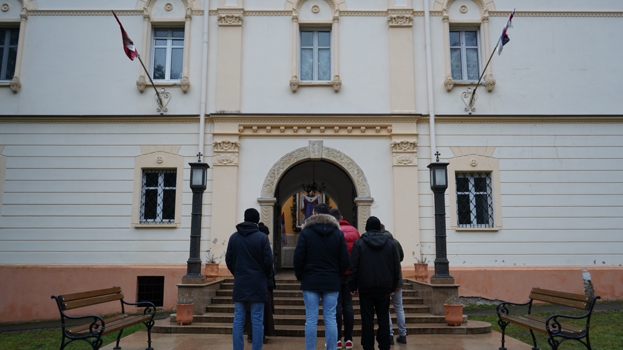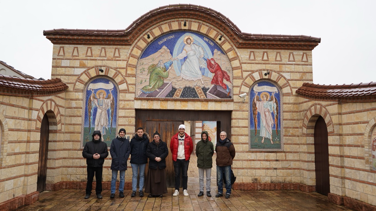 Ovaj cjelodnevni izlet-hodočašće započeo je u Manastiru Kristovog Uskrsnuća u mjestu Kać, desetak kilometara istočno od Novog Sada. U ovom relativno novom manastiru, građenom od 2007. do 2012. u stilu svetogorskih manastira, postulanti su doživjeli topao doček monahinja eparhije Bačke, te su imali priliku razgledati crkvu koja je još u fazi oslikavanja i uređenja interijera, i ponešto naučiti o ikonografiji tipičnoj za pravoslavne hramove. U manastiru smo susreli nuncija u Bugarskoj i Sjevernoj Makedoniji mons. Luciana Suriania koji je došao u posjet jer je prije svoje sadašnje službe, bio nuncij u Republici Srbiji te je i tada dolazio u ovaj manastir.
