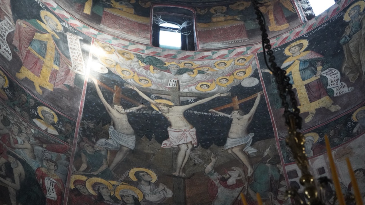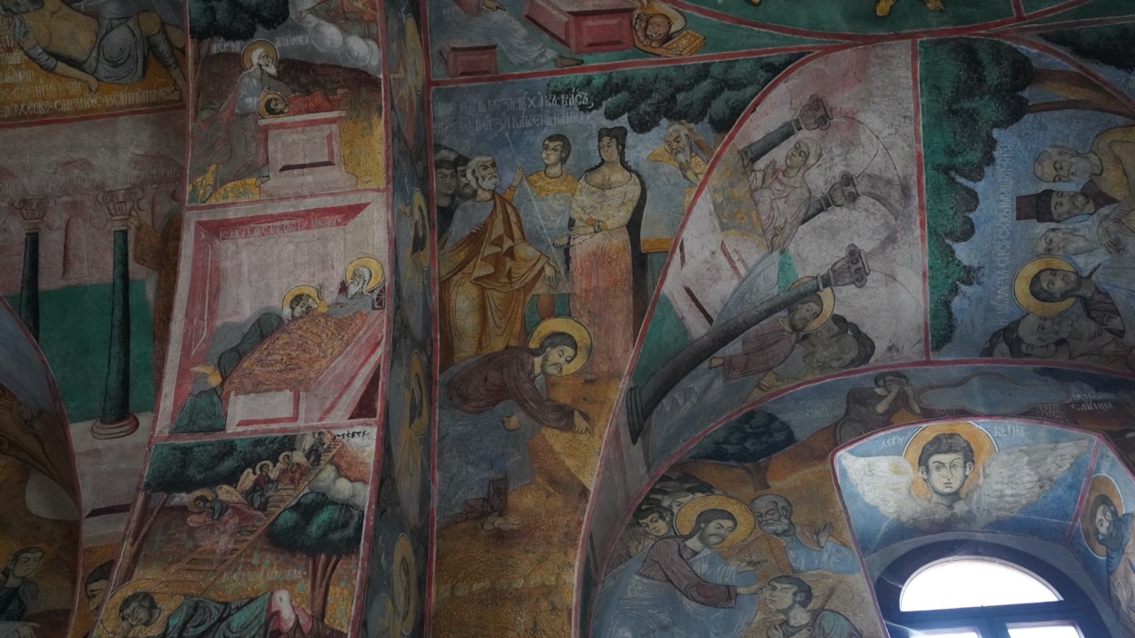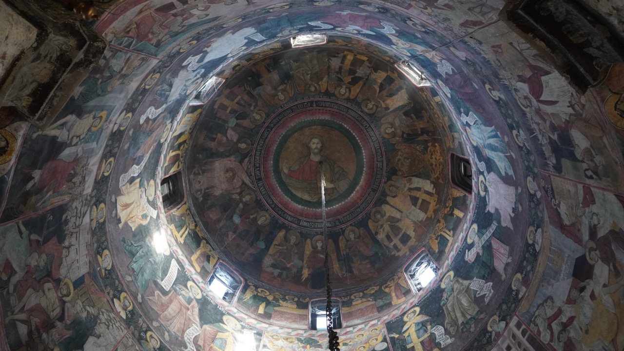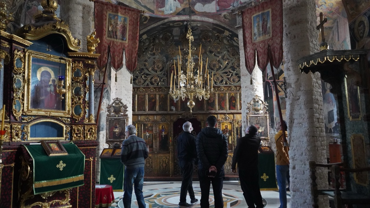 Trojica monaha srdačno su nas dočekali, proveli nas kroz manastirske prostore, pokazali freske i pričali o povijesti ovog manastira. Uz sam manastir smješten je i lijepo uređen park, koji je tako oblikovan da oslikava pojedine zgode iz evanđelja. Tako su u njemu zasađena točno 153 stabla, koliko je riba izvukao Petar nakon što su učenici, prema Isusovoj uputi, bacili mrežu s desne strane čamca, iako prethodne noći nisu imali ulova.