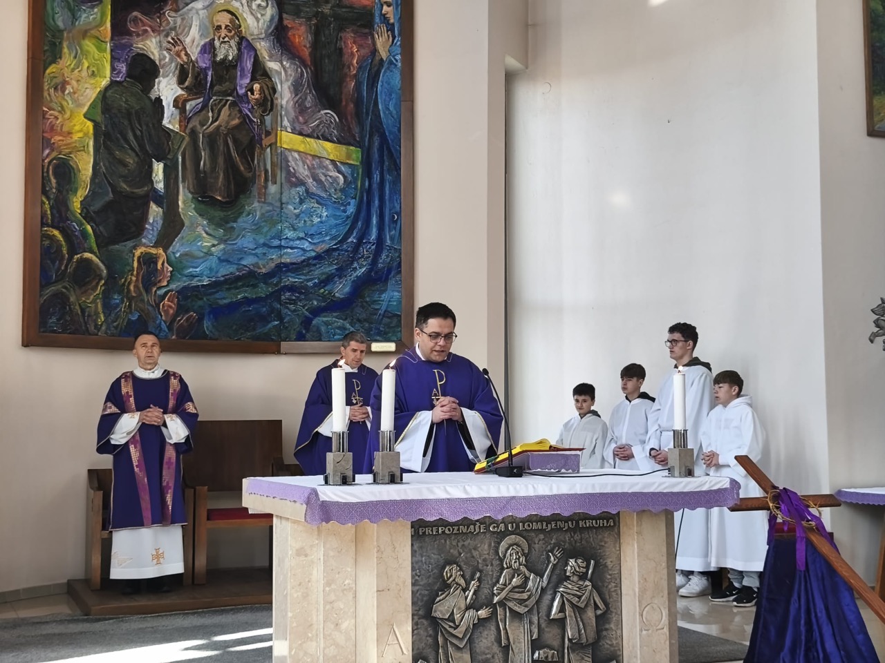 Ova sveta misa bila je dio korizmene duhovne obnove koju je organizirala župa i u kojoj smo i mi dali svoj doprinos. O. Nikola Grizelj, magistar bogoslova, predslavio je misu te je propovijedao o Isusovu dolasku u život Samarijanke, koji se nakon susreta s njim potpuno mijenja. Isus joj je došao dok je obavljala svoje svakodnevne poslove. O. Nikola je naglasio da to vrijedi i za nas danas, jer nam Isus dolazi u susret upravo u ovom trenutku. On dolazi izravno u naše želje, potrebe i probleme i dolazi nam onakvima kakvi smo, a na nama je da mu se odazovemo.