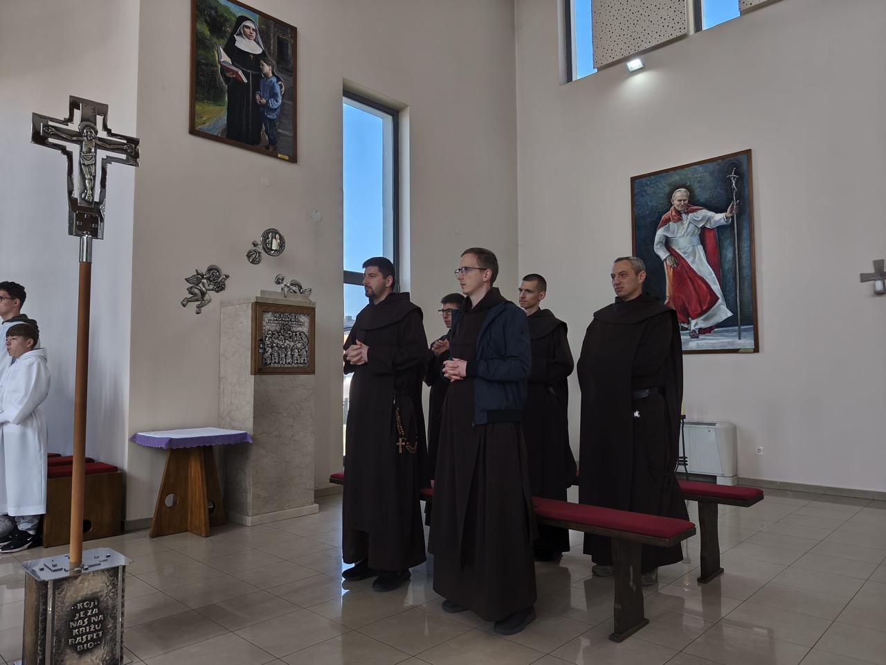 U Viroviticu smo stigli prije mise kako bismo se upoznali sa župnikom, sabrali se i pripremili za misu. Osim župnika Željka Benkovića, dočekao nas je i stalni đakon Ivo Grbeš, inače otac našeg brata Mihaela.